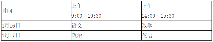 1.文化考试科目为语文、数学、英语、政治四科,每科满分为150分,四科满分为600分。考试时间如下: